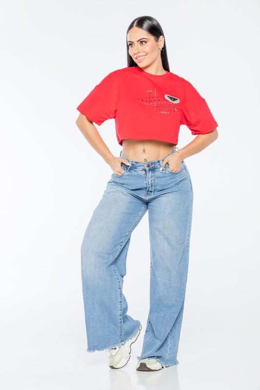 PEANUTBODY Fashion Casual Crop Top Women D'versh by Peanutbody Cotton Casual Crew Neck with stones and leather stamp Clothing JeansProveedor:PeanutBodyPrecio habitual $35.00 USDPrecio habitualPrecio unitario / por$60.00 USDPrecio de oferta $35.00 USDOferta