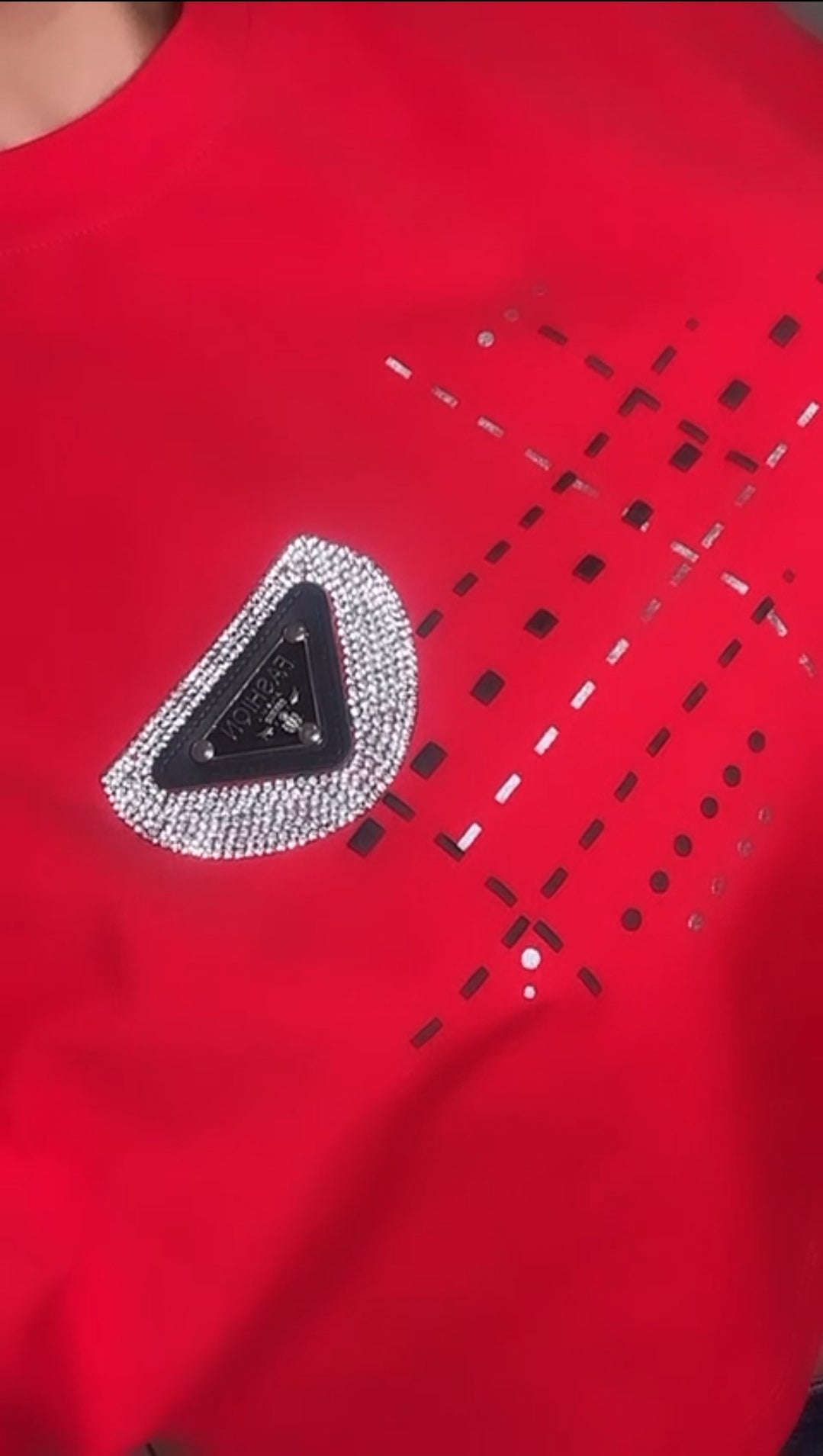 PEANUTBODY Fashion Casual Crop Top Women D'versh by Peanutbody Cotton Casual Crew Neck with stones and leather stamp Clothing Jeans